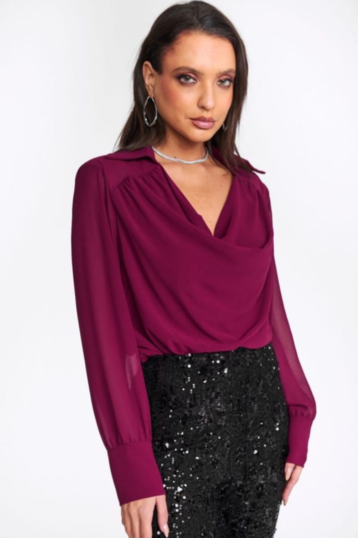 Blusa de gasa en color burdeos.