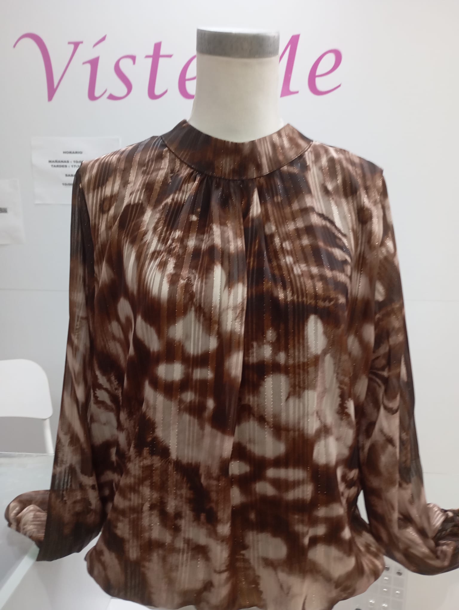 Blusa gasa estampada con tonos marrones.