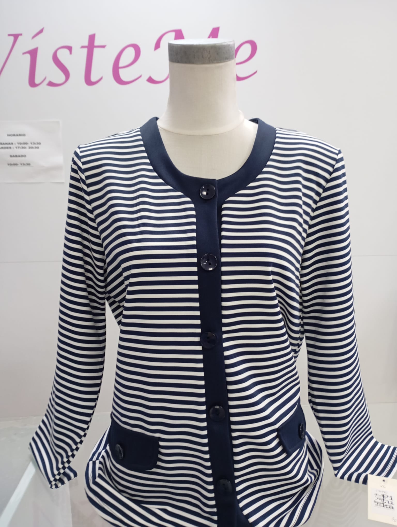 Rebeca rayas blancas y azul marino, el tejido es elástico.