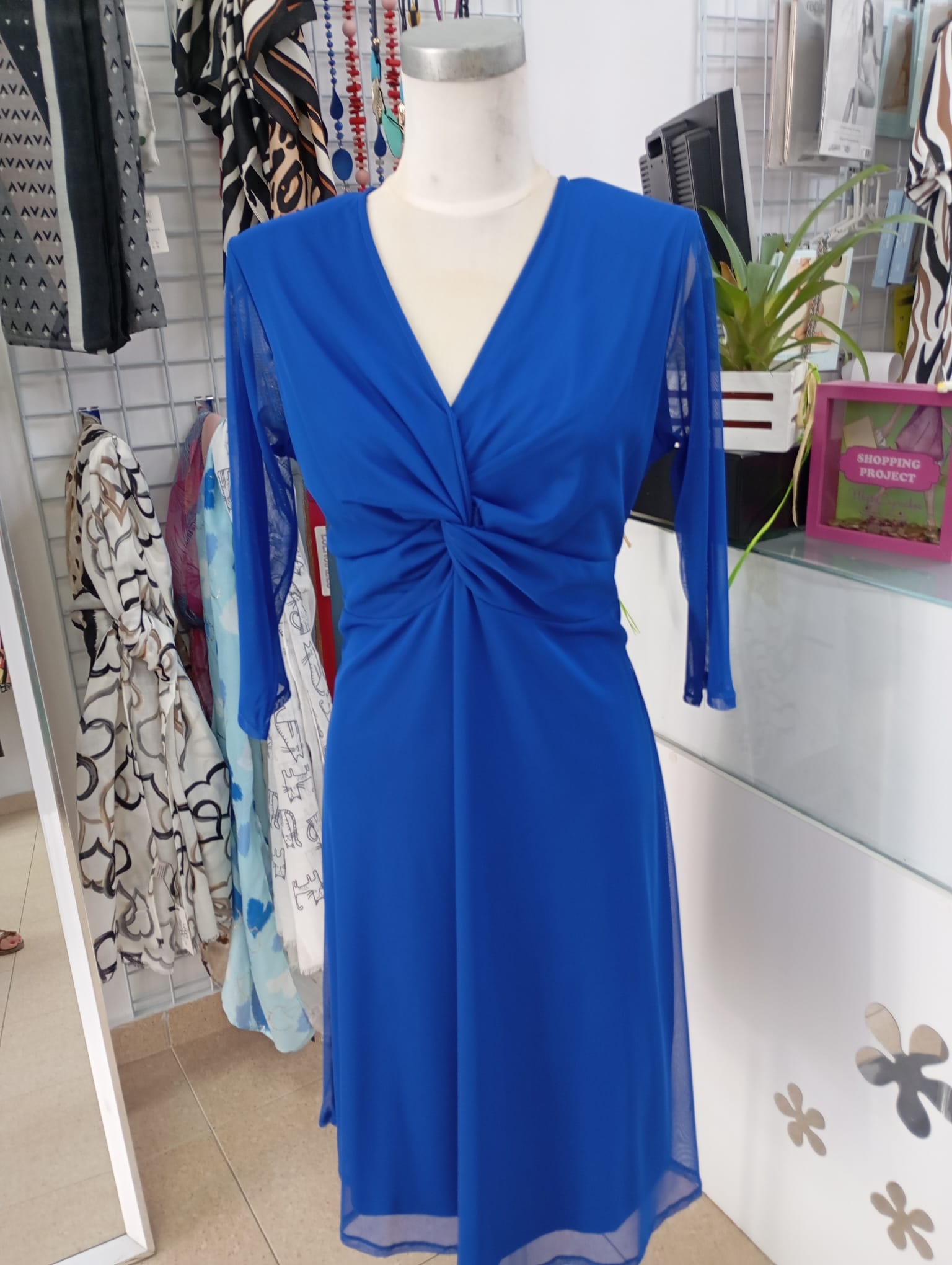 Vestido nudo tull en color azul eléctrico.