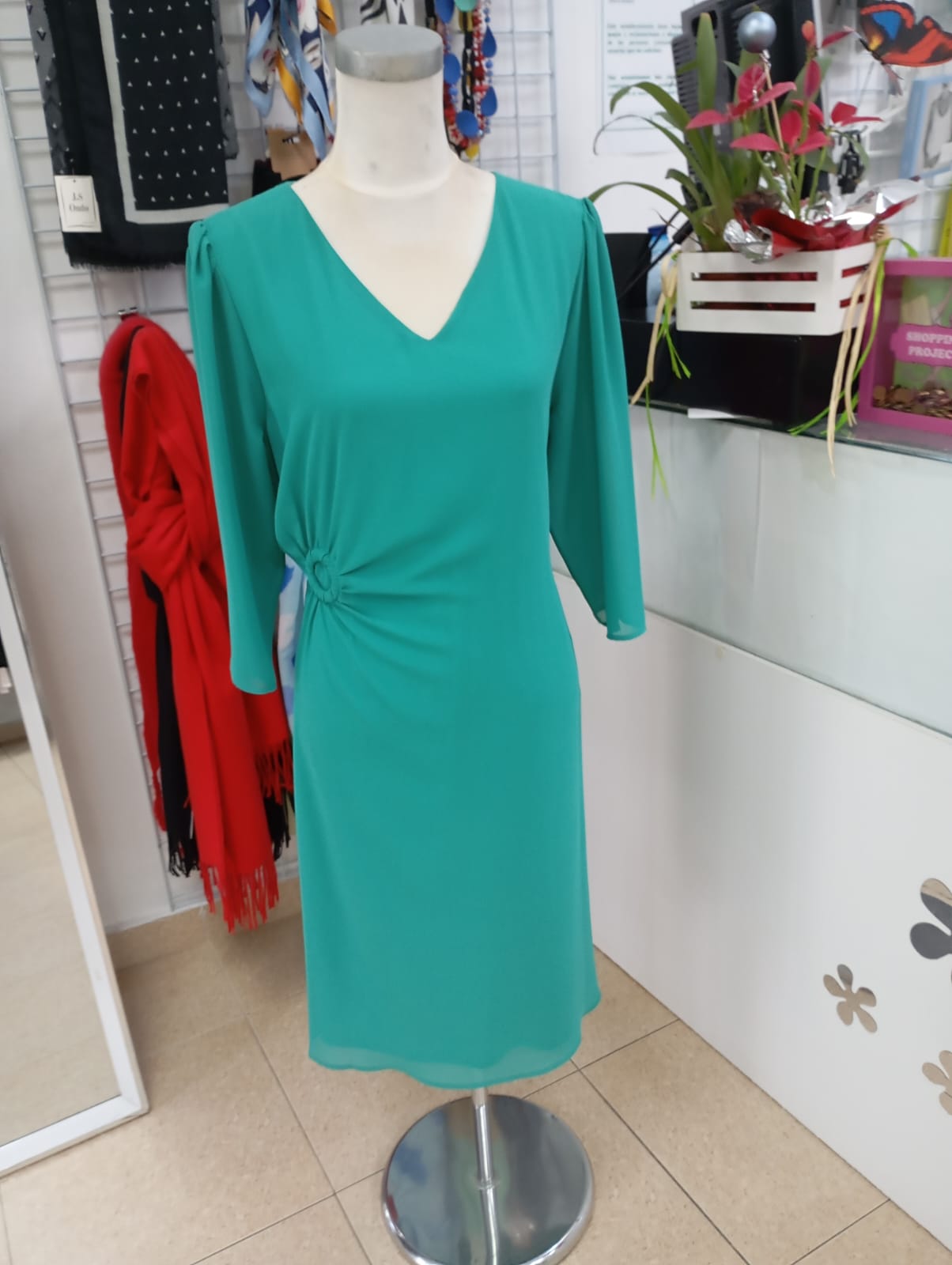 Vestido de gasa en color verde con rizo en el lateral.